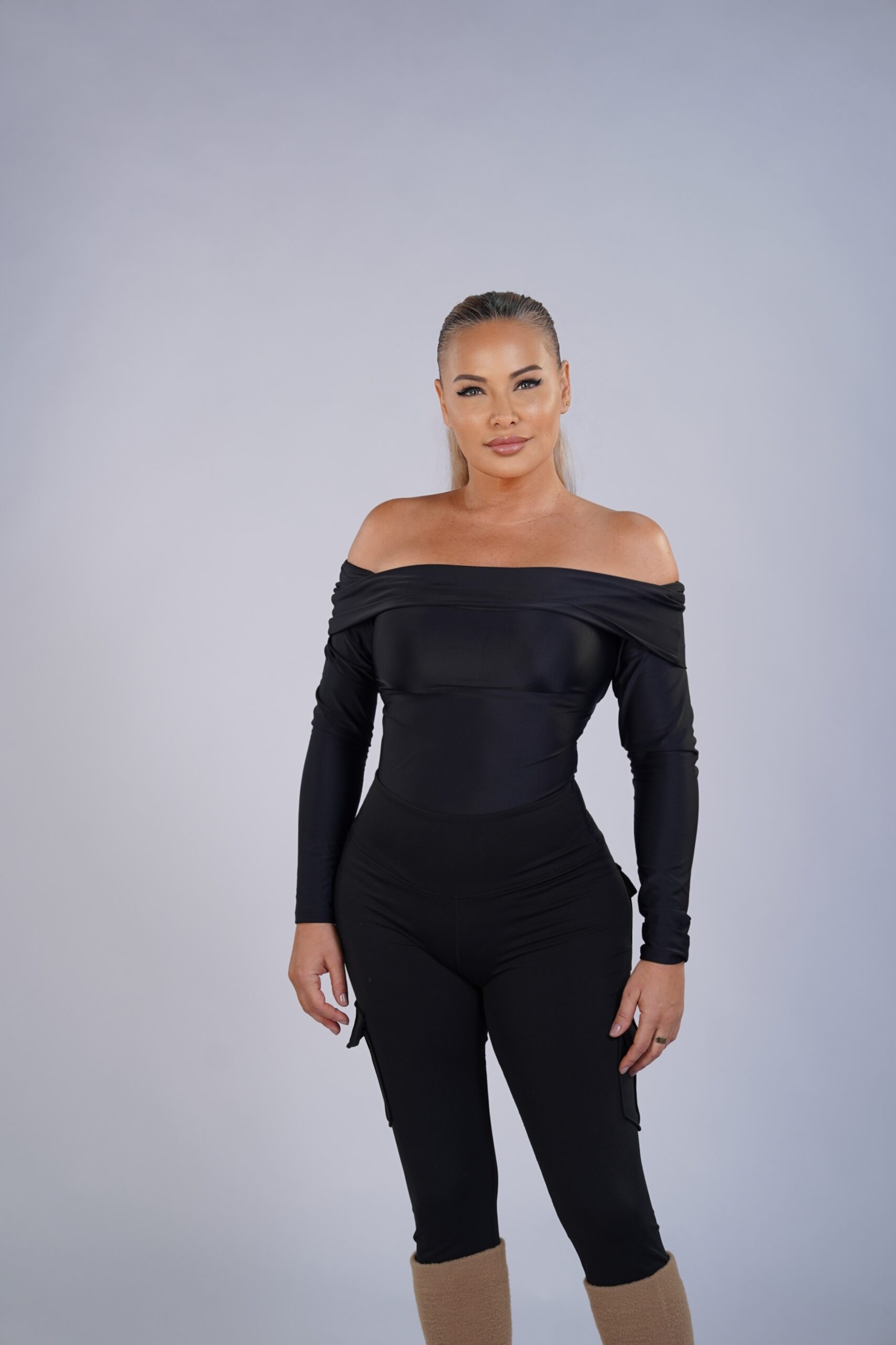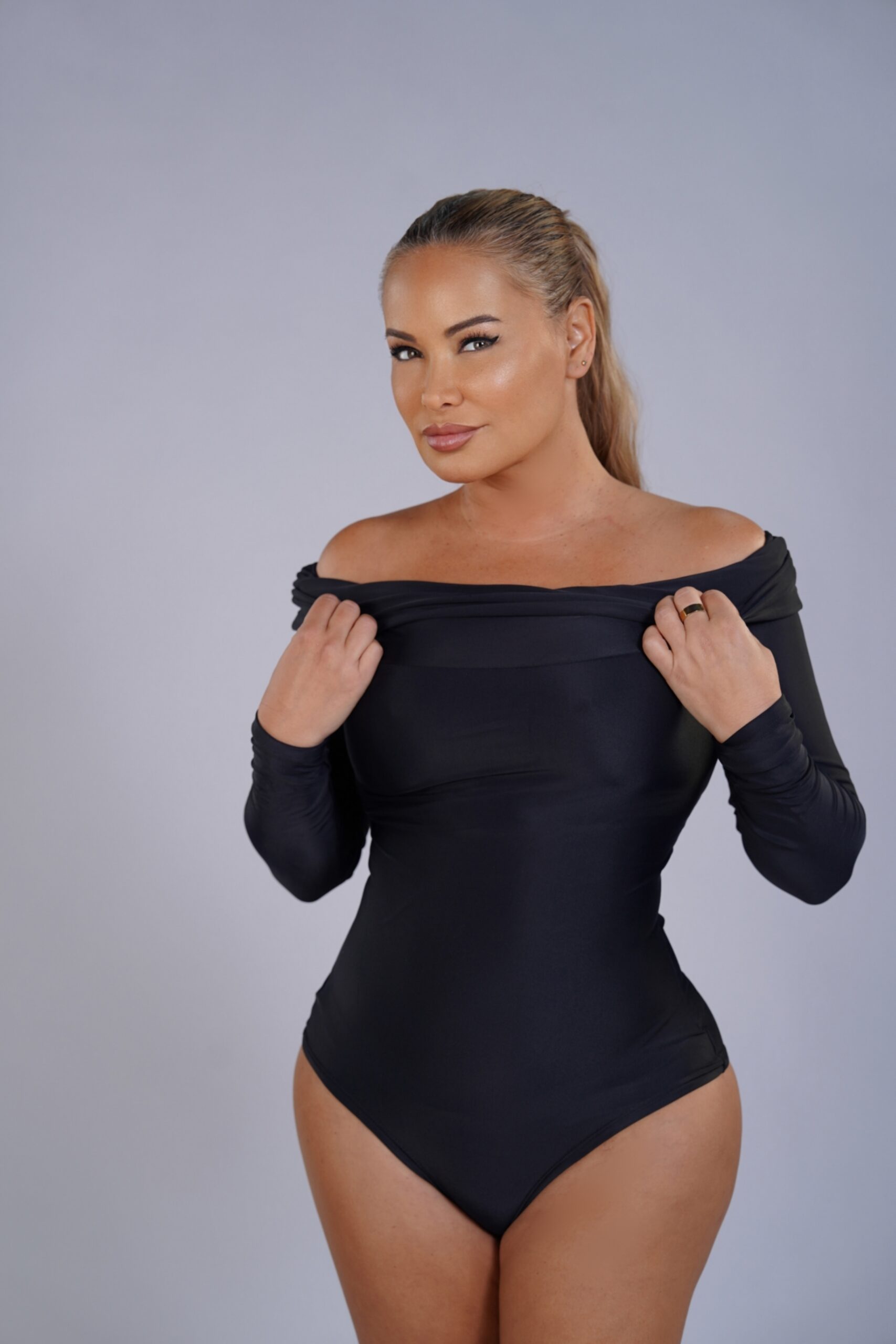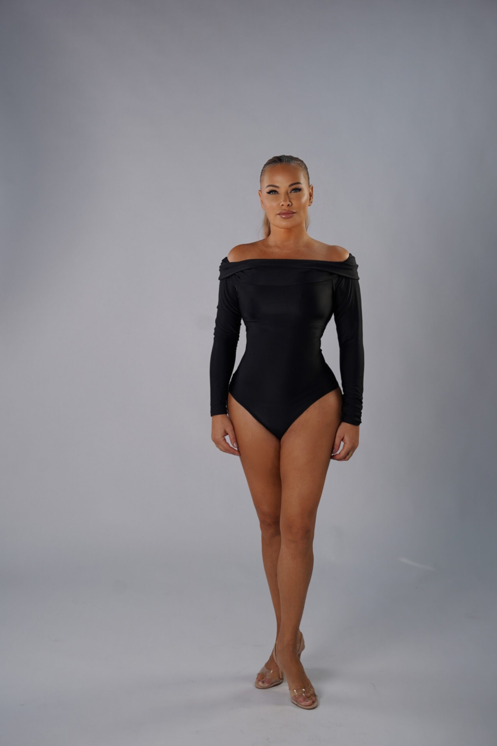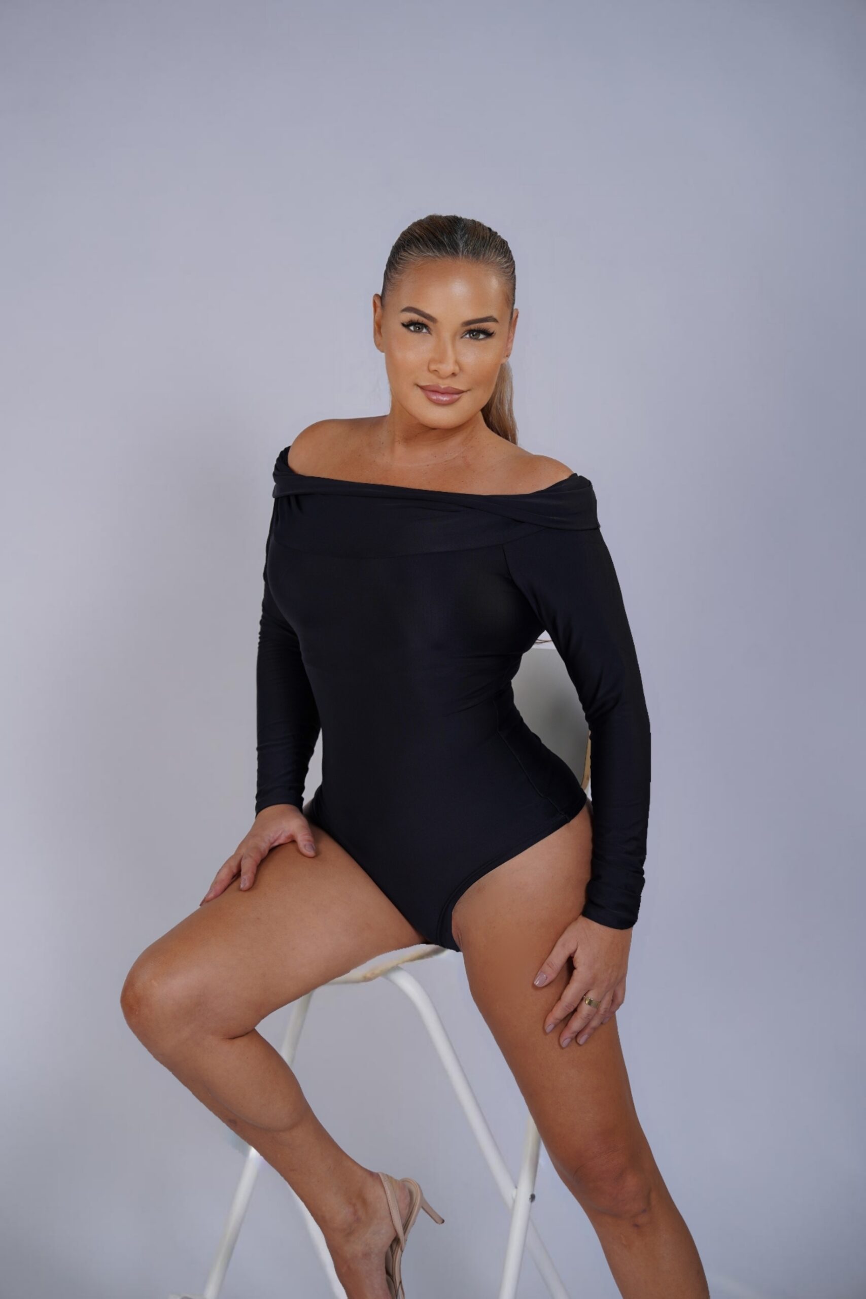 An off-shoulder bodysuit designed to sculpt and refine the silhouette with effortless sophistication. Crafted from premium Brazilian Lycra with high-compression support, it smooths the torso while enhancing the neckline. A versatile piece that transitions from casual chic to elevated evening style.